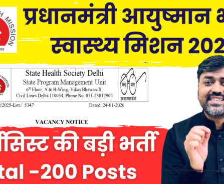 Delhi State Health Mission (DSHM) has invited online applications for the post of Pharmacist on a purely contractual basis under the Pradhan Mantri Ayushman Bharat Health Infrastructure Mission (PM-ABHIM). Selection will be done through Document Verification and Interview. This is a golden opportunity for B.Pharm and D.Pharm candidates looking for government contractual jobs in Delhi. […]