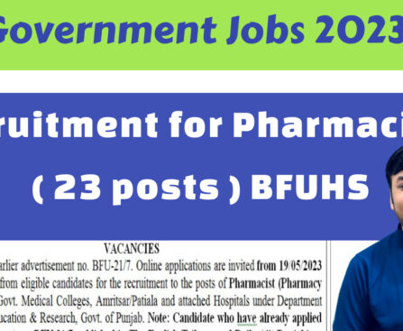 Reference to earlier advertisement no. BFU-21/7. Online applications are invited from 19 05/2023 to 08.06 2023 from eligible candidates for the recruitment to the posts of Pharnacist (Pharmacy Oficet)-23 at Govt. Medical Colleges, Amritsar/Patiala and attached Hospitals under Department of Medical Education & Research, Govt. of Punjab. Note: Candidate who have already applied vide advertisment […]