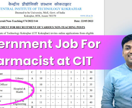 Central Institute of Technology Kokrajhar (CIT Kokrajhar) invites online applications from eligibleIndian nationals for appointment to the following posts on Direct Recruitment basis. Posts – Pharmacist No. of Post – 01 UR Pay Level as per as per 7th CPC – 5 Age Limit – 30 Years Educational and other qualification required for direct recruits- […]