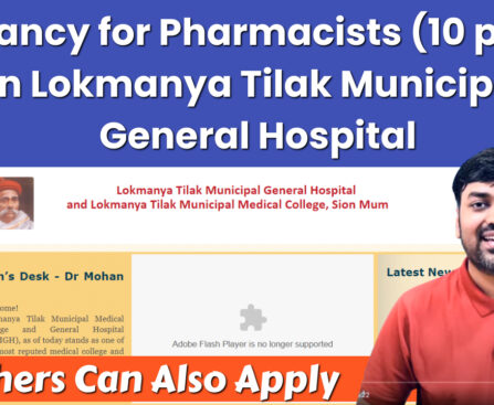 Post : Pharmacist No of posts : 10 Applications are invited to fill up the following vacancies in Lokmanya Tilak Municipal General Hospital and Medical College on contract basis. Applications are invited from interested candidates who fulfill the qualifications and conditions mentioned below. Salary : Rs. 18,000/- Qualification : Candidate must possess State Govt Public Education Verification Diploma in […]