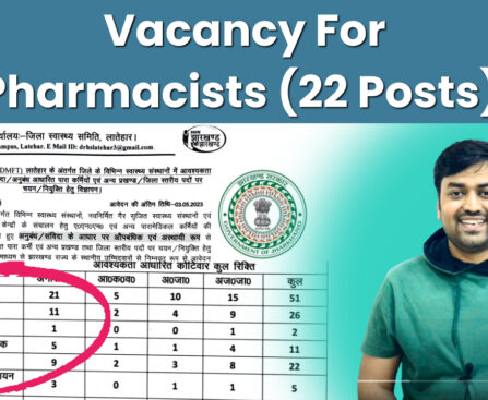 Post : Pharmacist No of posts : 22Qualification :• Degree / Diploma in Pharmacy• 02 Year Experience in managing drug store in a reputed hospital/health centre after passing of Pharmacy course.• Registered under Jharkhand Paramedical council.Salary : Rs. 10450/- Age Limit :Determination of age limit Cut off date- 31.03.2023 will be calculated in the light of Personnel Administrative […]