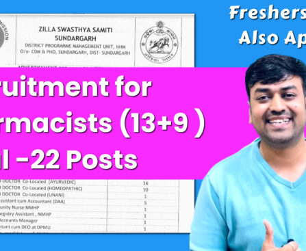 Post : Pharmacist No of posts : 22 [MHT(RBSK) – 13, MHU (Swasthya Sanjog) – 9] Qualification : D.Pharm, B.Pharm Other Terms & Conditions• The above position is contractual in nature for a period of 11 months, and coterminus with the scheme.• Interested In-house candidates of NHM can log in to sundergarh.nic.in for details. Candidates fulfilling the eligibility […]