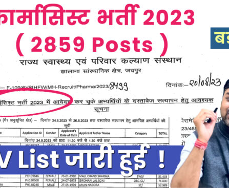DV List Pharmacist Rajasthan SIHFW 2023 State Institute of Health and Family Welfare (SIHFW) Jaipur invites online applications from qualified candidates mentioned in the Rajasthan Medical and Health Subordinate Services Rules 1965 (as amended) to fill the vacant posts of Nursing Officer and Pharmacist for Medical and Health Department, Rajasthan. No of posts : 2859 Minimum […]