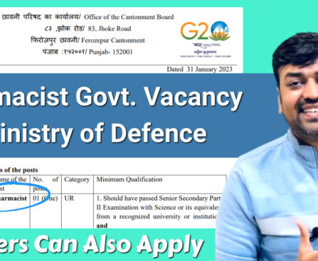 Post Name – Pharmacist (83 Posts) Date of Walk in interview – Pharmacist: 15th March 2023 Eligibility – Diploma in Pharmacy from recognized institute. Should be registered as Pharmacist with the Punjab Pharmacy Council. Candidates should have passed subject of Punjabi upto Matric standard.Desirable: Degree in Pharmacy from recognised institute /University Experience in dispensing and/or […]